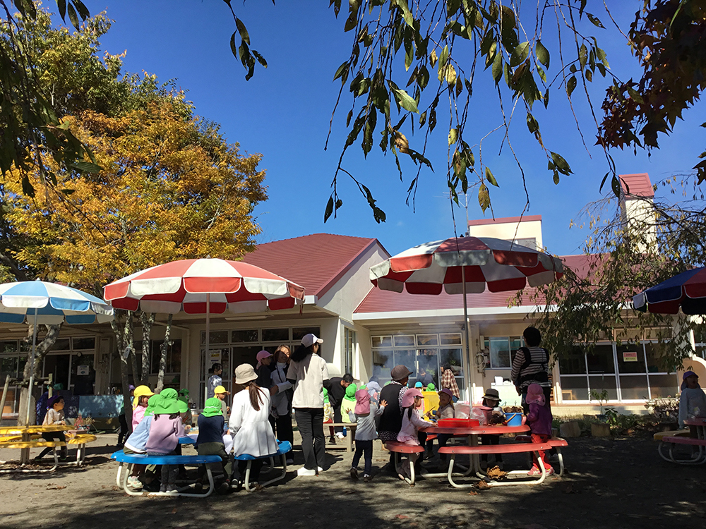 園庭で、ほくほくと焼きあがった本物のお芋を味わい、甘さに大満足。