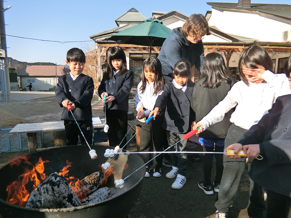 自分でマシュマロを焼いて食べましたが、焼けるスピードが速く焦げてしまったり、串から抜くのが大変だったり苦戦しながら初めてのスモアの味や作り方を楽しんだ子どもたちでした。