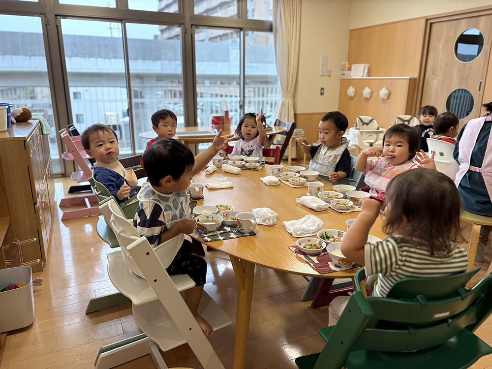 おひさま保育園では、0~2歳児のこども達が同じ空間で食事をしています。 それぞれのテーブルが近いので、お互いの様子を感じ取ったり、会話 […]